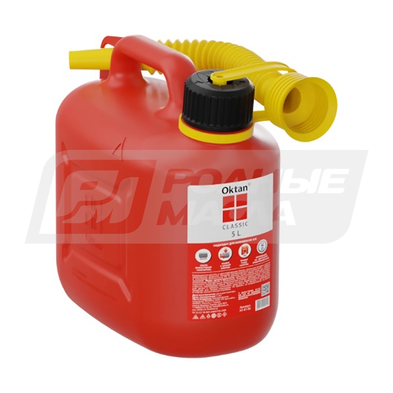 Канистра для ГСМ и технических жидкостей в классическом цвете корпуса и в комплекте с гофрированным гибким шлангом.